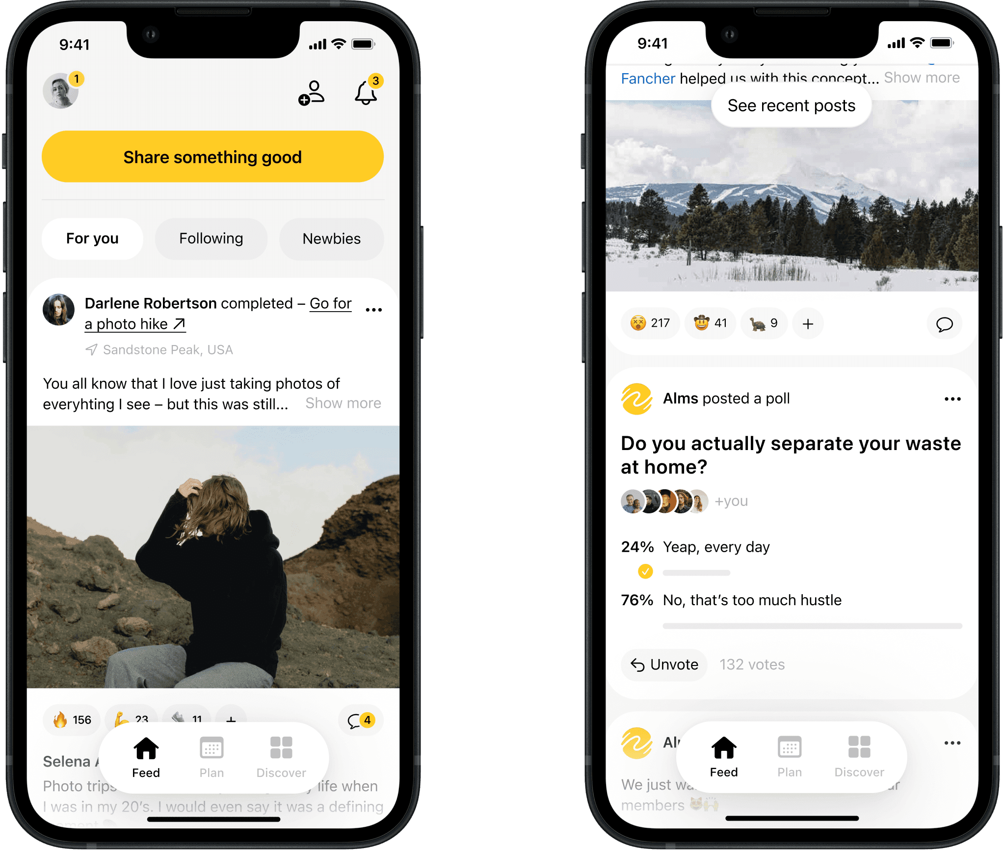 We rebuilt Alms as a vertical network where people post what they've done and invite others to try. The goal was a faster "see it, understand it, try it" loop. I simplified the visual system – removed noise, refined color, made it media-first.